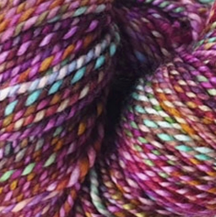 100% wool, 2 ply twisted variegated fibre
